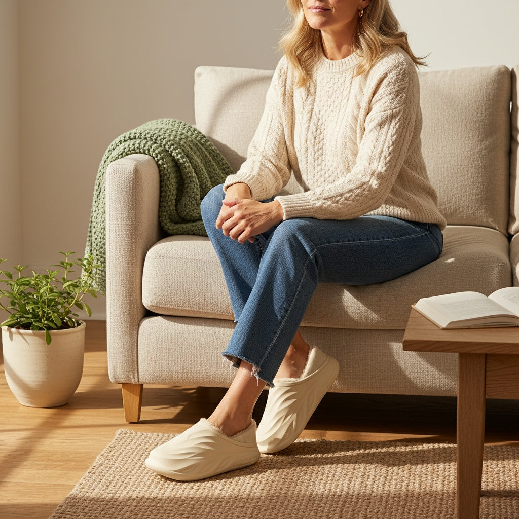 “I have extremely flat feet and joint pain, and most shoes leave me aching after just an hour. These slippers cradle my foot perfectly. No pain in my knees or hips anymore — just comfort."